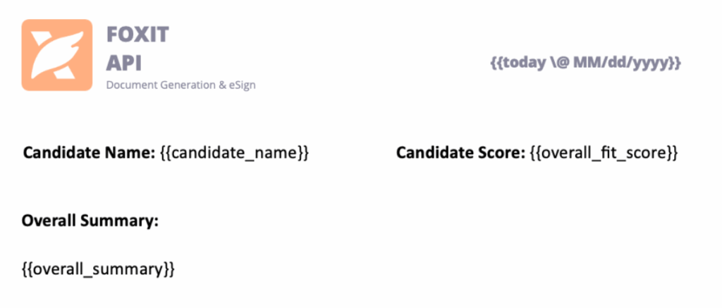 Next, use the Foxit Document Generation API to fill your Word template and create a formatted PDF report.